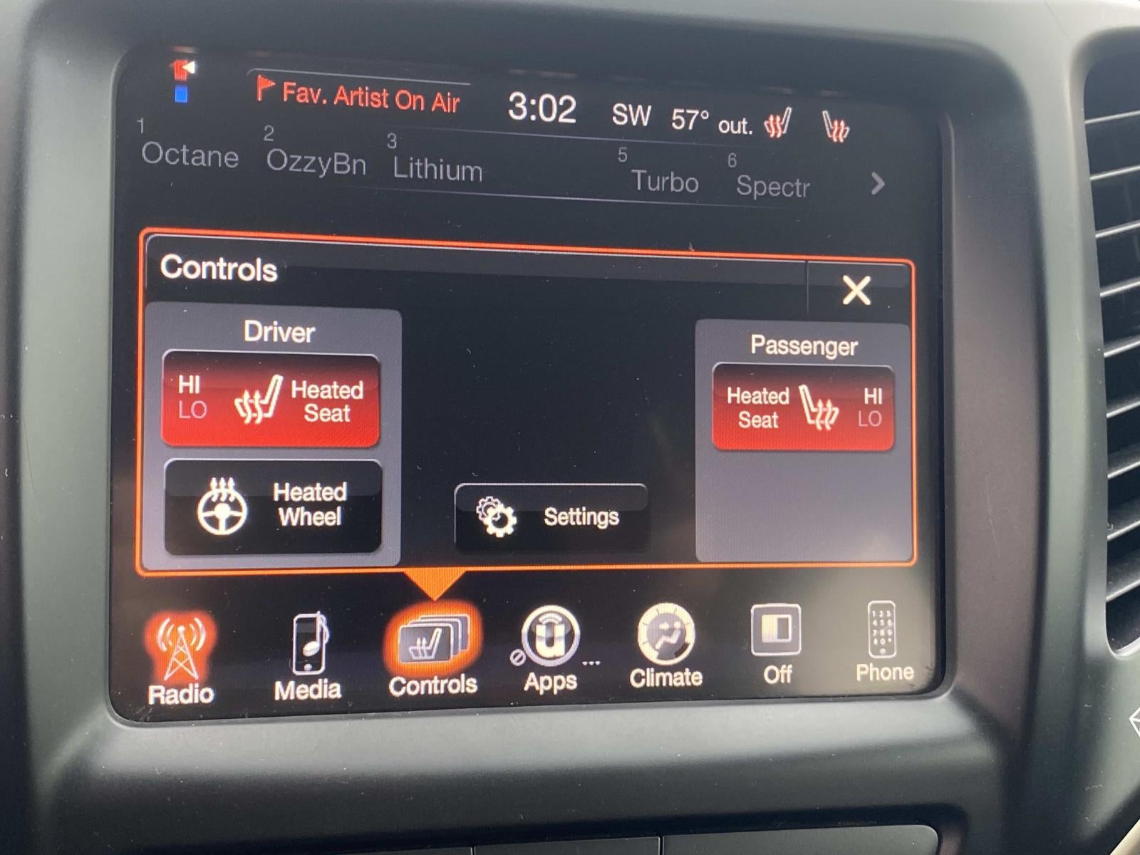 - Radio w/Seek-Scan, Clock, Speed Compensated Volume Control, Aux Audio Input Jack, Steering Wheel Controls, Voice Activation, Radio Data System and Uconnect External Memory Control