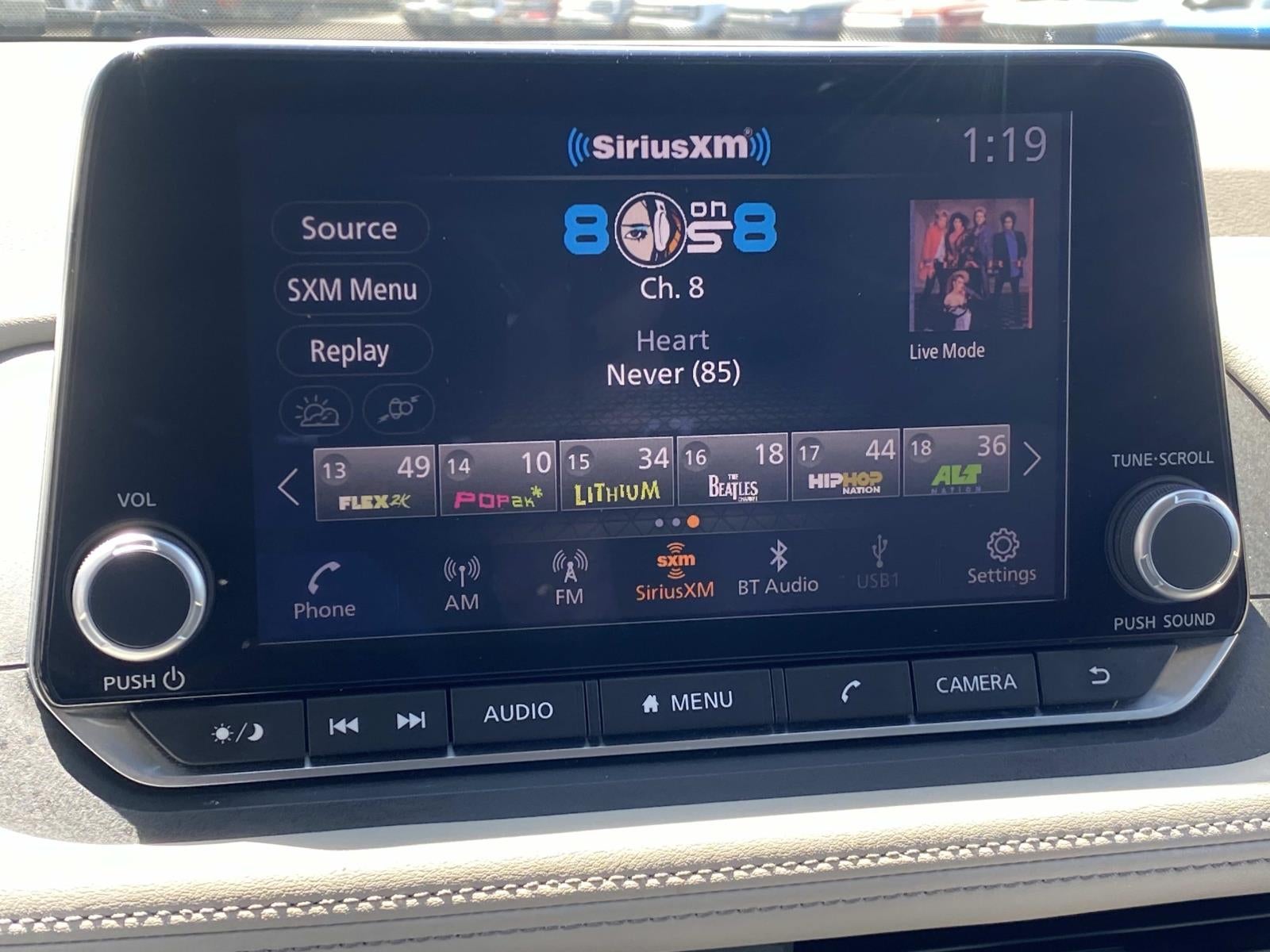 - Radio: AM/FM -inc: 6 speakers, NissanConnect featuring Apple CarPlay and Android Auto, 8" color touch screen display, Bluetooth, WiFi hotspot and NissanConnect services powered by SiriusXM